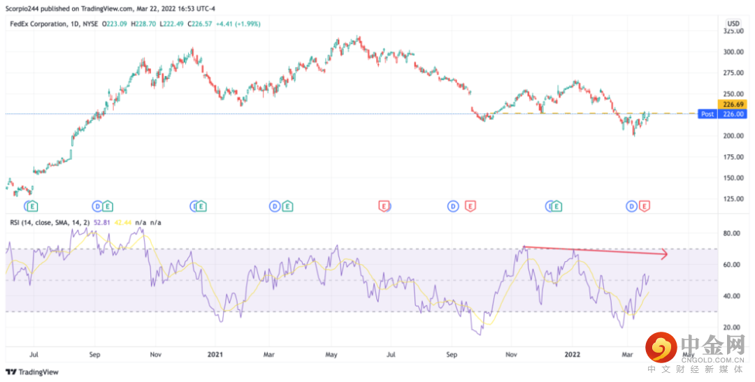 您可以观察到同样的情况发生在联邦快递的图表中。
