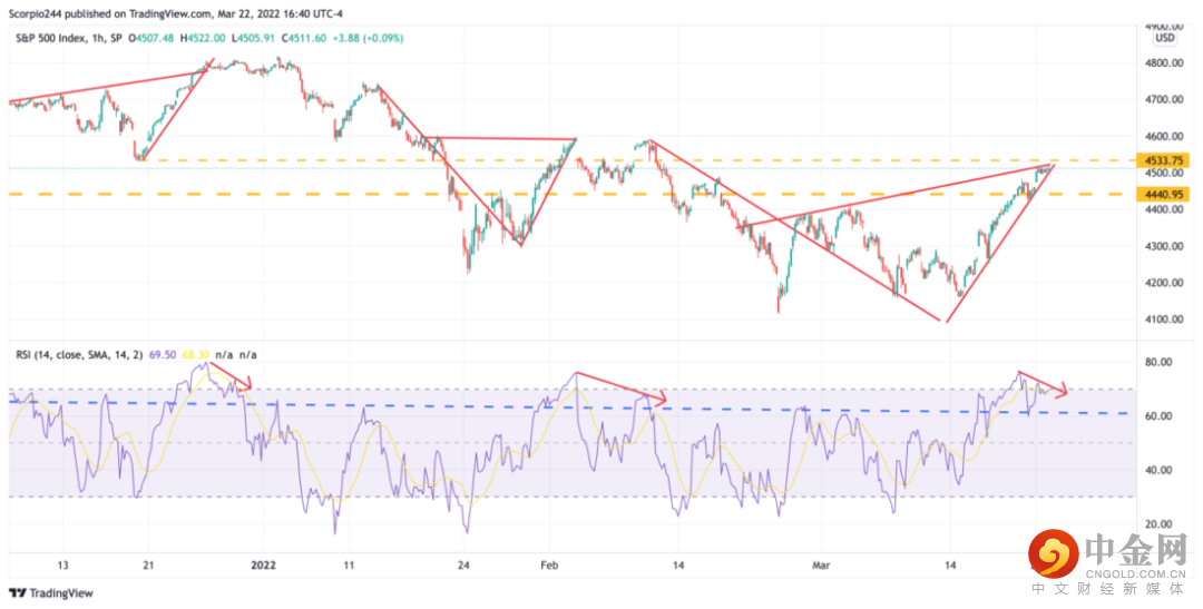 如果标普500指数能维系住这些水平线,则下跌的那一天可能在明日出现。如果标普500指数无法维系住这些水平线,则标普500指数可能会升至4650点。不过,我认为水平线不会打破。