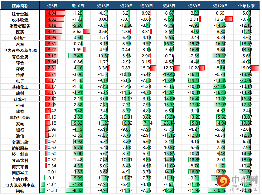 通过对各行业的各周期涨跌幅的观察,我们可以找到近期(近5日、近10日)涨幅较好的行业,这些行业是短期内的热门行业,如果你想追热点,可以在这些“动量效应”较足的行业内寻找机会,但也需要结合估值、基本面、政策面等因素判断其趋势的可持续性。