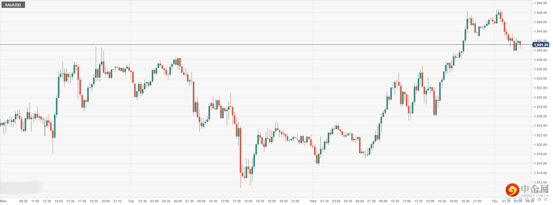 § 贵金属方面:黄金兑美元上升至1941.24。