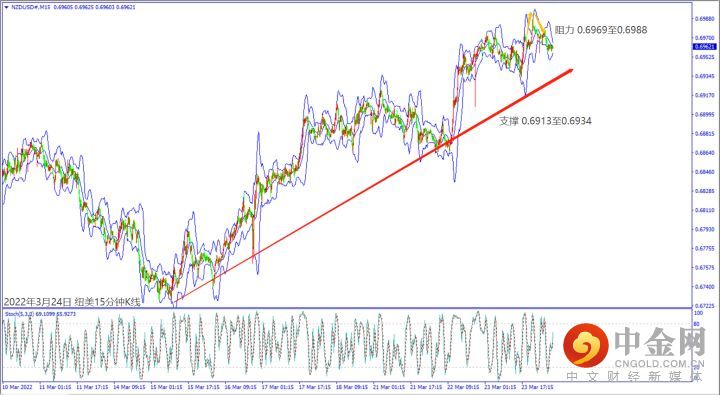 昨天(23日)俄罗斯宣布一个重要石油管线于周四暂停输出,有望带动油价和推升加元,美加冲不过5日均线1.2577,建议可偏空操作。预期俄乌战争造成今天(24日)欧元区公布制造业数据大都不佳,欧美冲不过5日均线1.1015,建议可偏空操作。昨天新西兰总理阿德恩称将在4月4日对疫情红灯状态进行审查,纽美一旦跌破240日均线0.6957,建议可短空操作。