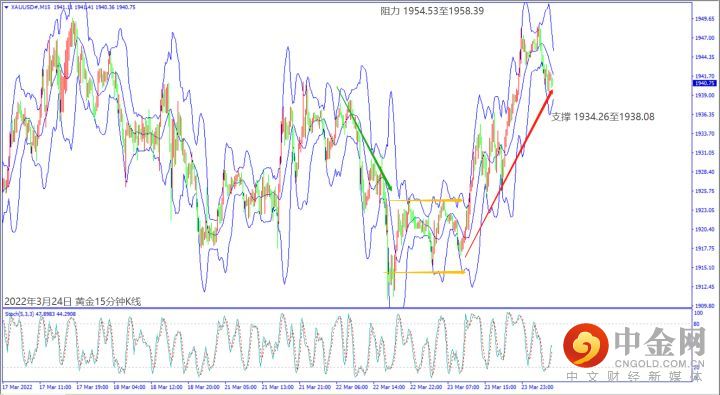 昨天(23日)美联储官员称今年需要进行数次50个基点的加息造成市场担忧,欧美股指出现大跌走势,也推升黄金重回1940关口。预期晚间美国公布经济数据大都不佳,黄金价格守住5日均线1932.45美元,建议可短多操作。