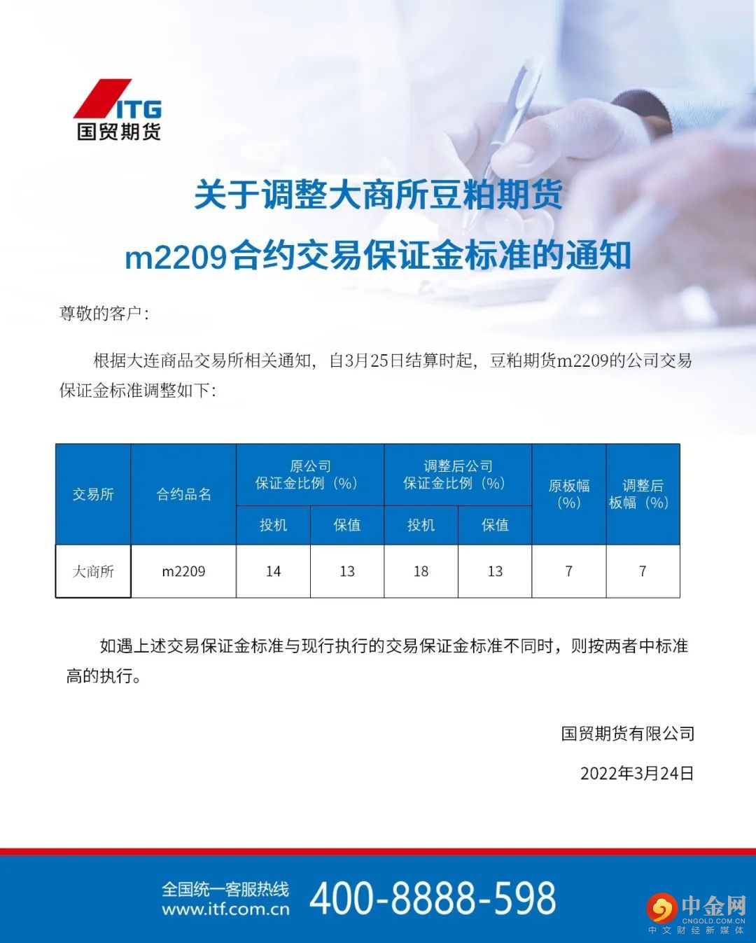 关于调整大商所豆粕期货m2209合约交易保证金标准的通知