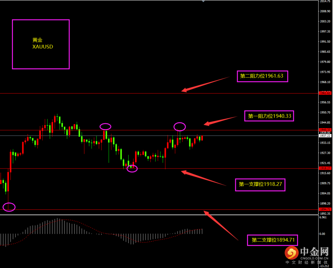 天图黄金收阳线,价格小幅冲高,多头有所增强,自近期连续下行之后,底部再度维稳,形成底部震荡,随着调整的结束,日内更多以逢低看多为主。小时图黄金期间连续阳线拉升,MACD位于0轴之上,多头占优(但并非强势),短期上方无大阴线回落,空头不强,日内更多以逢低看多为主?