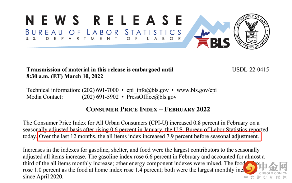 值得我们注意的是,导致物价爆表飞涨的罪魁祸首并不是近期抢占财经头条的俄乌冲突,因为高达7.9%(40年最高)的美国2月CPI数据在2月底就已经被统计完成,而俄乌冲突爆发日期为2月24日,所以冲突导致的原油价格暴涨其实几乎没有被统计纳入CPI(主要涨幅集中在3月上旬)。
