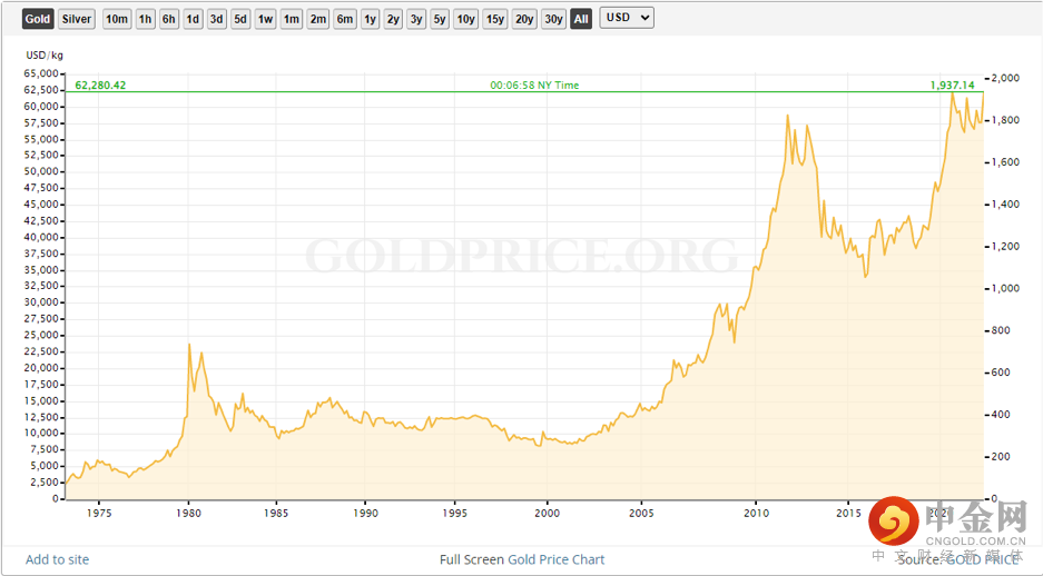 黄金价格走势一览,数据来源:Godprice.org