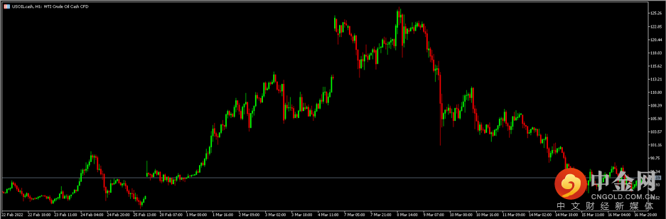 美国原油(USOIL)在触及125美元高位后出现回落