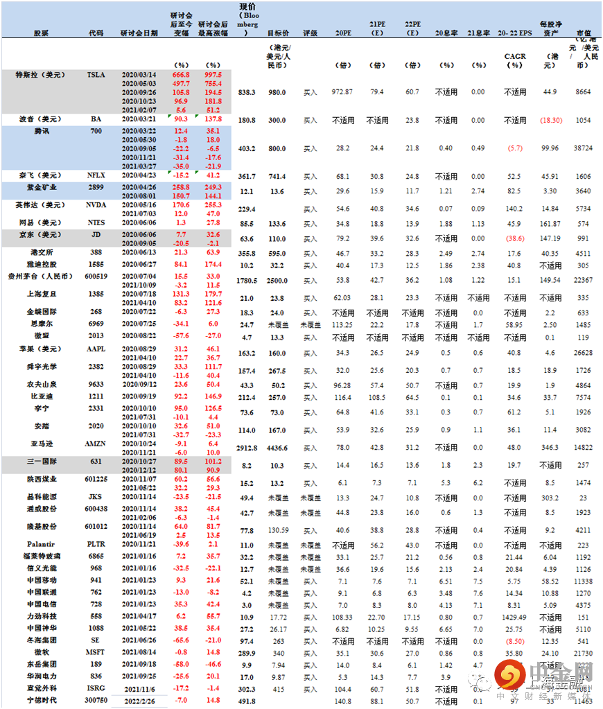 近月来战争叠加疫情因素,导致股市大幅波动。大市和个股的波动并非周末论坛沟通的核心,周末及财富论坛聚焦市场热点和优质企业,输出长期投资的理念。虽市场的波动容易引起投资者负面情绪,但基本上世界大事不影响股票长线回报,当前股市或已跌出一个黄金坑(如2012年5月17日恒指下探至当时最低19200点,半年回报有10.4%,一年后回报20.2%)。历史上每次恒指的急跌反而是优秀的入市时机。股市急跌释放风险,也有一定错杀,此时认真选股更有价值。同时中概股的普跌也使得公司估值回归到合理水平。也折射出正确的长期投资方法论,坚守现金流折现的估值方法,持有基业长青的低估值高分红股,才是保存财富让财富不断增值的长久方法。