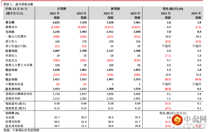 综合上述因素,我们轻微调整盈利预测,下调2022年股东净利润预测0.3%,但提升2023 年预测 0.1%(见图表 2)。