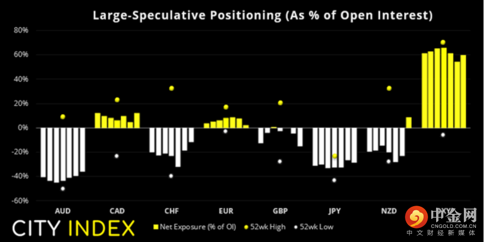 值得注意的是,欧元期货的净多头持仓同样减少,至9周最低点。