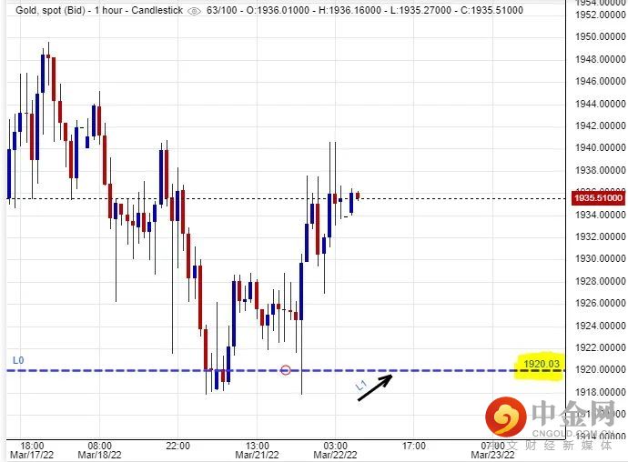 适宜考虑部署在$1,920美元左右建立好仓盘,短线看高金价一线至$1,957美元水平后止赚,止损在$1,912美元。