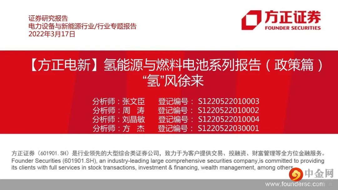 本文来自方正证券研究所于2022年3月17日发布的报告《氢能源与燃料电池系列报告(政策篇)——“氢”风徐来》。