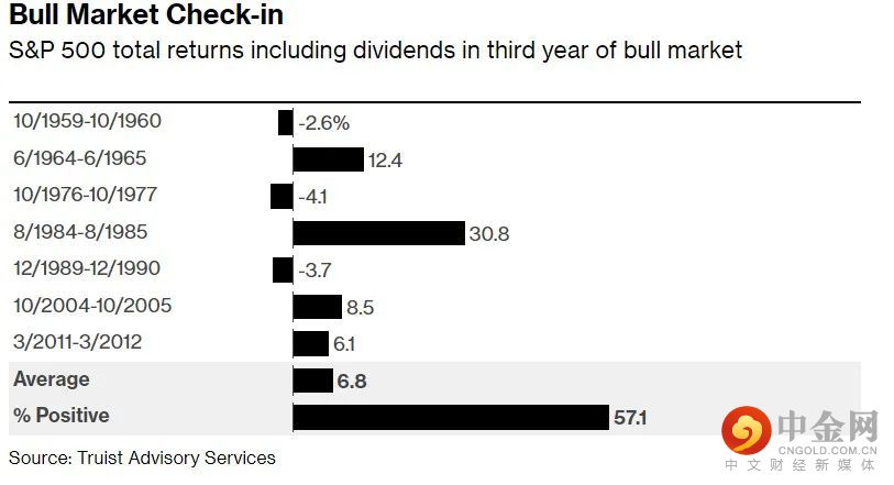的确有不少分析师预计,随着美联储收紧货币政策,投资者将难以从美股市场获得像过去2年那样如此高额的回报率。不过,美股仍有上行空间,根据Truist Advisory的统计数据,自1957年以来,标普500指数的“平均牛市持续期间”为5.8年,目前这一轮最新牛市仅仅过去两年。