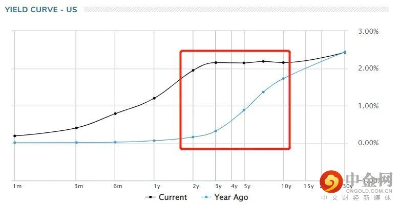 与此同时,国际油价飙升至每桶100美元以上,有可能进一步加剧美国已处于40年来高点的通货膨胀率。另外,美债2年期和10年期收益率曲线甚至有可能出现倒挂。