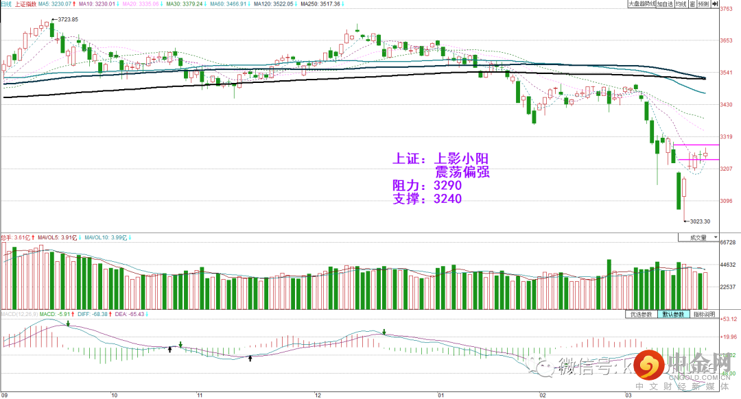 周一三大指数均收震荡小K线,性质上属于强势震荡。今日市场低开后分化,地产、银行、煤炭、高铁等板块走强,新冠治疗、半导体等题材板块走弱。今日沪指收上影小阳,日图级别维持偏强,创指收小阴,明日走势较为关键。整体市场仍维持中继形态,板块间良性轮动,可继续持股为主。关注年报和一季报预期造好的相关板块个股。