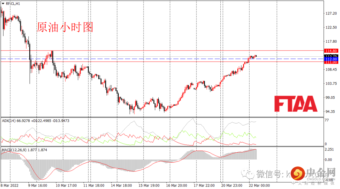 原油周一大幅上涨,日图收出长阳线,显示短期多头大幅发力。日图级别或延续偏多。沙特方面表示,胡塞武装的袭击最终将影响石油生产。此外伊核协议进展的消息并未拖累油价。昨日油价呈现单边震荡盘升走势,显示多头走势坚决。今早亚盘油价小幅上涨后,当前回落,小级别指标出现背离,欧盘或震荡为主。操作上可现价附近平出多单,或逢低在112附近重新轻仓多,止损111,目标114.80。