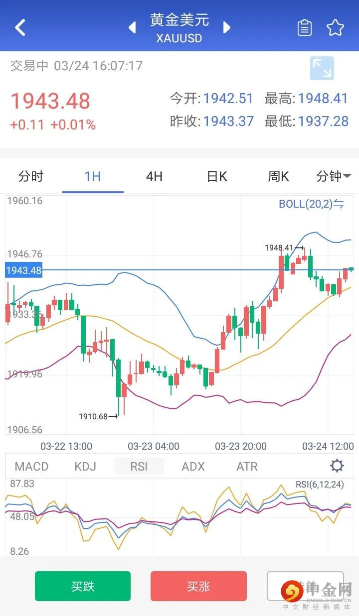 周三,俄罗斯军队继续进攻乌克兰,而美国放话要继续推出制裁措施,避险情绪再度来袭,现货黄金重启涨势,尾盘继续拉升站上1940美元关口,最高触及1948.25美元/盎司,逼近1950关口,最终收涨1.18%。本交易日亚欧时段,现货黄金震荡微跌,目前交投于1940美元附近,因美元上涨、收益率在多年峰值附近徘徊,不过,日内将迎来北约峰会,预计欧美国家将宣布对俄罗斯的新的制裁,金价的短线回调有望吸引逢低买盘的入场。