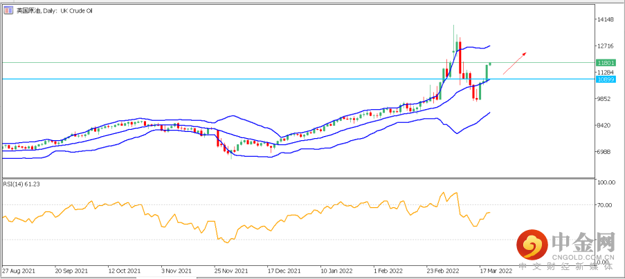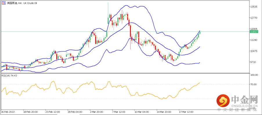 4. 英国原油(UK Crude Oil):英国原油昨日大涨近4%,技术面日图来看,后市依然有继续上涨的空间,总体走势较为乐观。近期重要支撑位于布林带中轨108处。再结合4小时分图,目前价格运行于5日移动平均线与布林带上轨处,虽然RSI指标已进入超买区域,但未有明显背离。日内关键支撑可依次关注114和108处,上方120将视为日内看涨动能扩大的关键压力,若突破可逐步看向125潜在目标。若日内价格跌破108关键支撑,则短期看涨动能减弱,后市可能下探100整数关口。