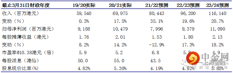 21/22财年为公司的内部管理变革和全面转型的一年,我们预计公司的盈利将在下一财年迎来明显改善。基于销气量15%的增速、毛差改善、增值服务公司分拆上市预期以及暖居工程、智能微官网和能碳综合运维新业务对主业的补充和延展,我们预计公司未来三年公司收入分别为804亿/962亿/1161亿港元,归母净利润为80亿/94亿/111亿港元,调整目标价至17.00港元,相当于22/23财年的10倍PE,维持买入评级。