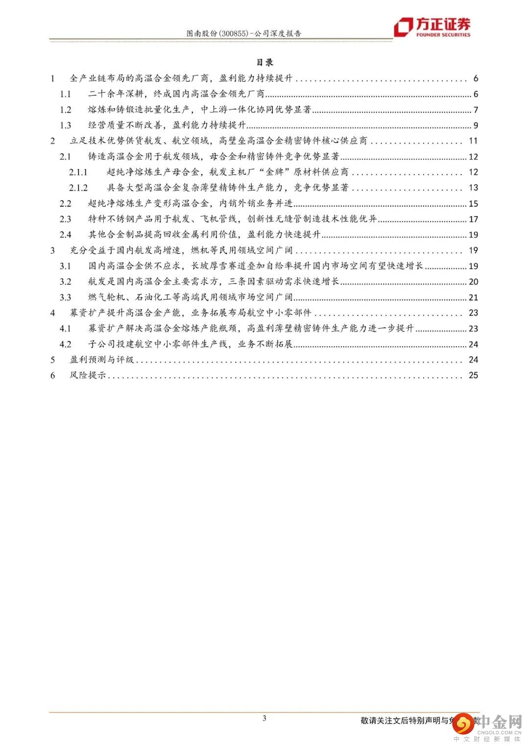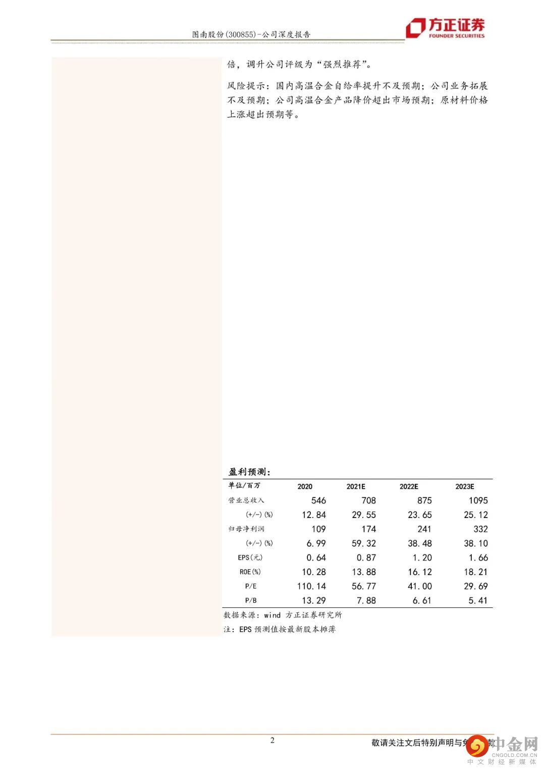 风险提示:国内高温合金自给率提升不及预期;公司业务拓展不及预期;公司高温合金产品降价超出市场预期;原材料价格上涨超出预期等。