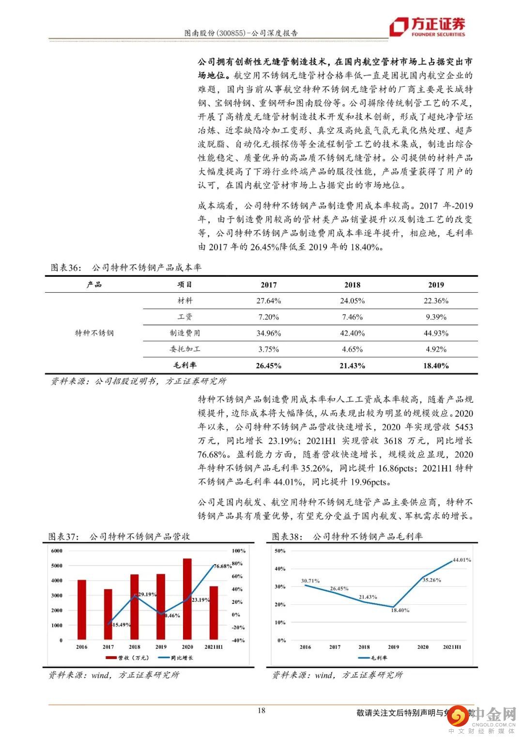 特种不锈钢方面,公司产品以无缝管材为主,应用于航空发动机各类导管、输油管线及飞机机身的液压管线等。公司创新性无缝管制造技术,在国内航空管材市场上占据突出地位。随着特种不锈钢产品营收增长,规模效应显现,盈利能力持续提升。2021H1,特种不锈钢产品毛利率同比提升19.96pcts至44.01%。