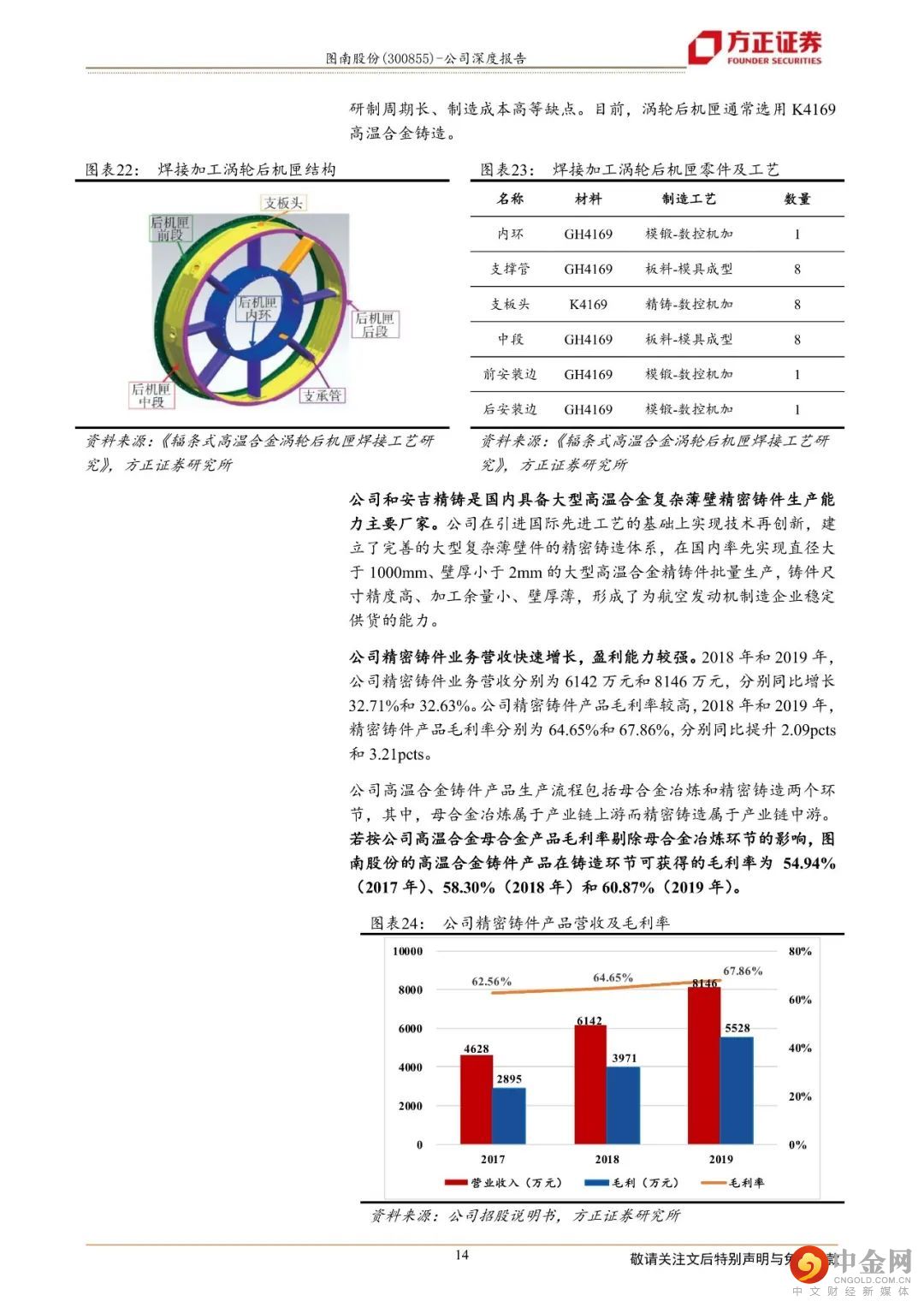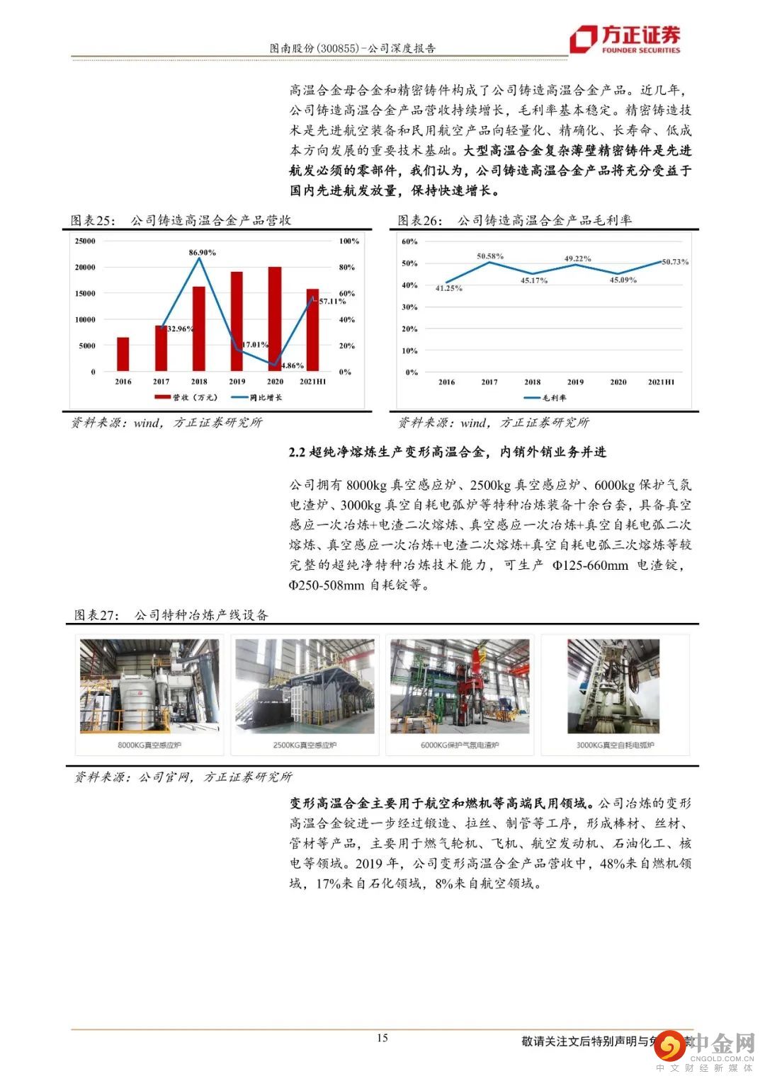 铸造高温合金方面,公司高温合金母合金和精密铸件产品用于航发领域。立足超纯净熔炼工艺生产高温合金母合金以及高壁垒的大型复杂薄壁精密铸件产品,公司铸造高温合金产品具有较强盈利能力。