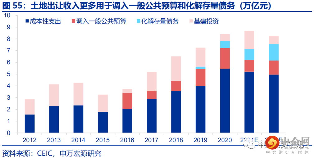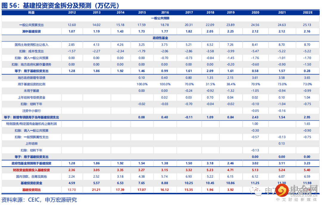 政府性基金支出或者说基建投资的约束在于融资吗?从2018年以来基建投资的运行框架视角出发,真正的约束在于财政对于地产基建“杠杆效率平衡”小循环的平衡。在此过程中,国有土地使用权出让收入的方式出现巨大的转变,主要用于化解存量债务和调入一般公共预算。一方面,随2018年地方政府置换债发行明显缩减和后续的停止发行,地方政府需要通过土地收入持续化解存量债务,2020年年中至2021年年底投向基建的信托余额收缩规模达到0.9万亿。另一方面,随着财政更多的采取减税降费激发实体经济活力并扩大未来税基的“拉弗曲线”扩张模式,一般公共预算收支承压,政府性基金调入一般公共预算保民生成。预计2022年中政府性基金的跨年资金和今年收入中最高可有2.6万亿调入一般公共预算,以保证一般公共预算支出在预算基础上再可增长2个百分点,以作为对经济增速的保障。同时也不会放松对于隐性债务处理的要求,甚至为了保证政府杠杆率稳定,而进一步加大。