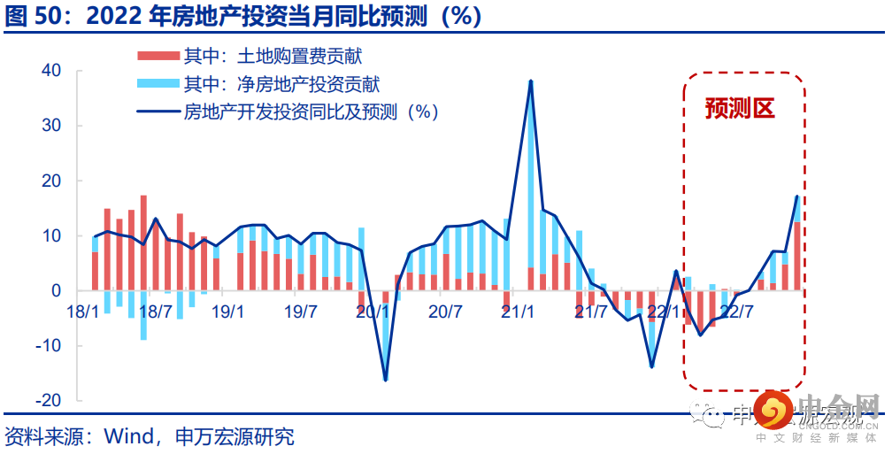 二、财政支出更为积极但采取了更安全的防御性措施,减税退税着力稳定就业和居民收入,而非直接刺激商品消费需求;疫情和防控升级、以及居民购房热情低迷令服务消费雪上加霜,但财政支出仍可通过政府消费形成稍好于去年的稳增长作用,下修居民商品和服务消费增速预测。出口前景的上修意味着年内出台个税减税以直接刺激消费的必要性显著下降,前期竣工已经开始走弱,22Q2起商品消费增长动能内生性弱化,下调全年社会消费品零售总额同比增速预测至5.0%。疫情近期的升级令全国范围内防控政策强度大幅提升,加之居民购房意愿的低迷令居民消费的金融服务增速也在2022年难以摆脱回落的趋势,我们本次实质性下修全年特别是上半年的居民商品和服务消费增速预测,预计全年对实际GDP增速的贡献合计大幅下降至约1.7个百分点,但更为积极的财政支出有望通过民生类政府消费拉动经济增长1个百分点,稍好于去年,预计最终消费贡献全年增速中的2.7个百分点。