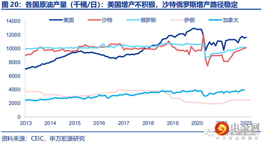 与俄乌冲突及相关制裁相关的四方面原油供给的不确定因素近期需高度关注。SWIFT制裁本身对俄油气供给可能产生小范围影响,与此同时美国两党提出法案禁止购买俄罗斯石油,虽然EIA决定投放6000万桶原油储备,但与当前的原油日需求量相比杯水车薪,布油价格大幅冲高,进一步加剧全球原油供给收缩的担忧。四大原油供给侧不确定因素浮现,将决定最近一段时间的油价走势:A. 俄罗斯受不断加码的制裁影响,是否会主动进行策略性的减产?欧美对俄制裁深入企业经营层面,俄罗斯的潜在反制措施值得关注。B. 美国页岩油生产是否可能得到政策鼓励,重回2019年下半年水平?因实施过度的财政货币刺激需求政策、以及本土产业链脆弱性问题,美国是全球主要经济体中“滞胀”程度最深的国家,油价高位不利于其货币紧缩遏制长期通胀预期的努力,美国政府有必要寻找更多的原油供给来源,但当前民主党政府环保政策仍对页岩油产量形成约束。C. 伊核协议谈判是否会快速获得积极进展?此前因特朗普政府退出伊核协议重新实施制裁而原油产出减少的伊朗,当前成为平抑油价的关键一环,关注伊朗政府本轮谈判中的对价是否能得到美国政府的满足。D. 5月OPEC+减产基线抬升超过160万桶/日,OPEC产油国会否配合性增产?基线上抬可以打开增产空间,但OPEC国家也可从供给紧平衡导致的高油价中获利,是否增产还需观察5月前的原油供需以及其他各方面宏观因素的变化。对上述四大原油供给侧的不确定因素,我们当前并不倾向于给出主观的判断,而是希望提出全景脉络,吁请大家关注。
