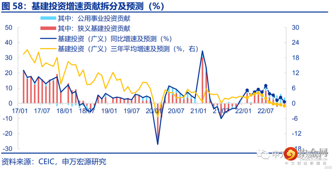 预计新能源投资将带动公用事业投资达到20%左右的同比高增,对下半年的全口径基建投资形成重要支撑,并带动全年全口径基建投资增速在6.0%左右。