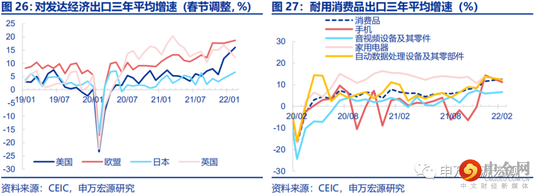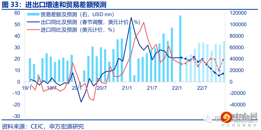 当前我们决定一次性大幅上调全年我国出口(美元计价)同比增速至15%,较此前预期上调9个百分点,其中3月可期待的出口同比增速即可达30%左右。这意味着,今年货物和服务净出口对我国实际GDP增长的拉动作用仍可能高达0.8个百分点左右,仍明显高于疫情前中期平均水平。