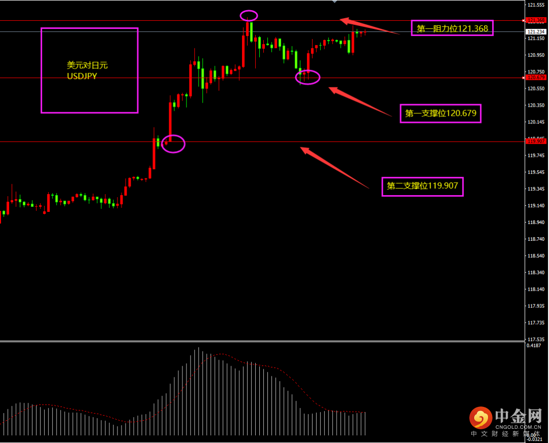 天图美日收阳线,价格继续冲高,多头相对强劲,短期上方并未出现阴线调整,空头力度相对较弱,日内更多以逢低看多为主。小时图美日期间高位震荡,MACD虽下滑至0轴附近,但多头仍然占优,短期价格靠近震荡高位,面临突破,日内更多以震荡以及震荡上行为主?(大阴线不出,空单不入)