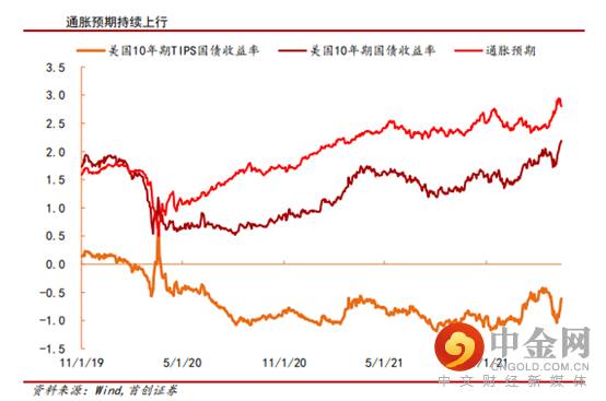 第三,美联储上调2022年核心CPI预期1.4个百分点至4.1%,同时下调经济增长预期至2.8%。本次俄乌冲突对全球范围内的能源、金属和农产品供给造成了较大影响,使得已经处在高位的通胀预期被进一步推升,美国通胀风险已经大于20世纪60年代末和70年代初,预计年内美国核心通胀将保持在4%以上。