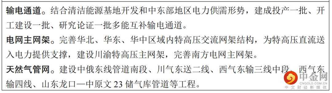 新型电力系统方面,规划指出,要推动电力系统向适应大规模高比例新能源方向演进、要创新电网结构形态和运行模式。此外,规划在统筹提升区域能源发展水平中指出,要完善华北、华东、华中区域内特高压交流网架结构,为特高压直流送入电力提供支撑,建设川渝特高压主网架,完善南方电网主网架。