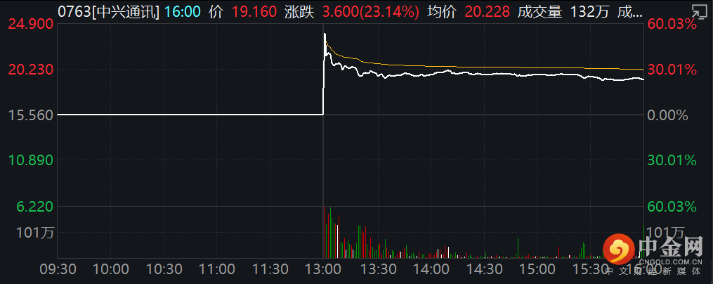 3月23日,中兴通讯(000063.SZ,00763.HK)午后复牌,A股开盘直接涨停封板,港股涨幅一度超过60%,收涨23.14%。