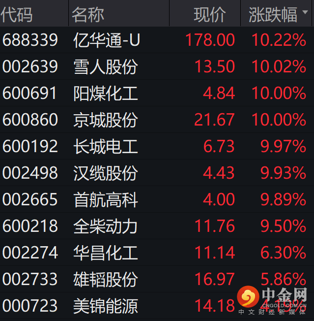 该顶层设计一出炉,绿氢相关技术和燃料电池技术相关的投资机会受到二级市场关注,绿氢方面,恒光股份20cm涨停,阳煤化工、首航高科、华昌化工涨停;燃料电池技术方面,亿华通-U、长城电工等多股涨停;雪人股份二者兼备而涨停。