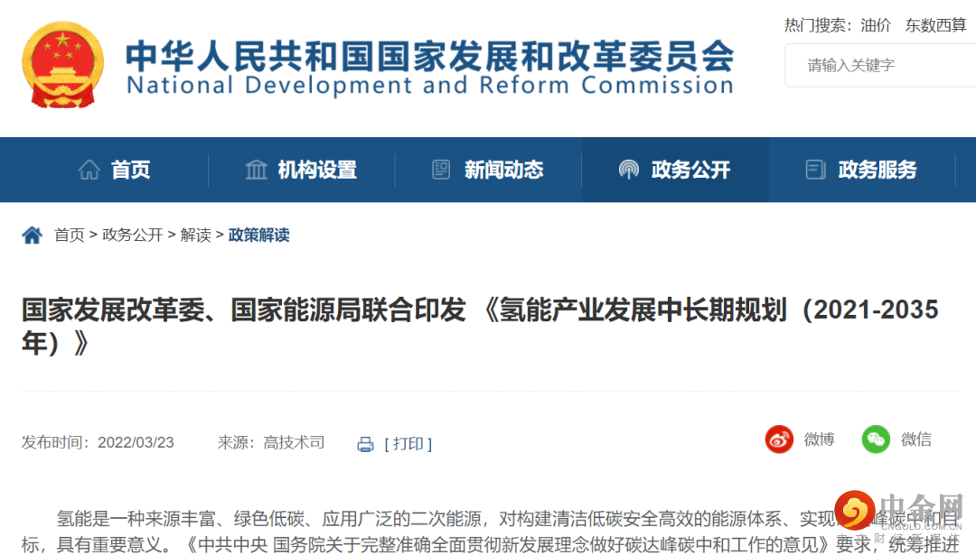 3月23日,国家发展改革委、国家能源局联合印发 《氢能产业发展中长期规划(2021-2035年)》。