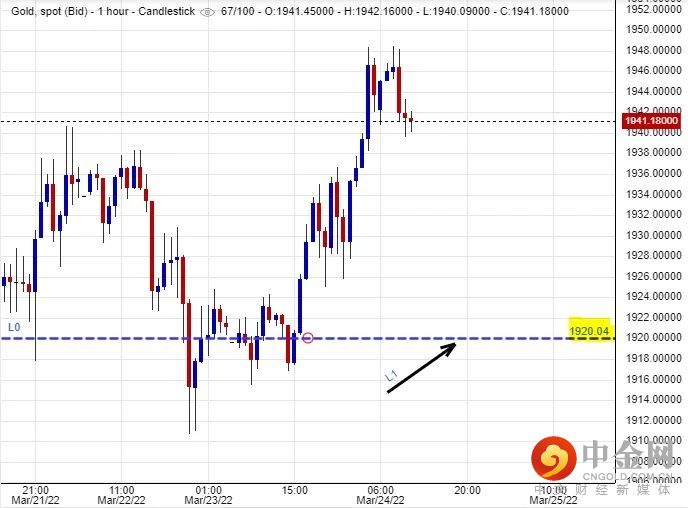可以部署在$1,920美元左右建立好仓盘,短线看高金价一线至$1,962美元水平后止赚,止损在$1,912美元。