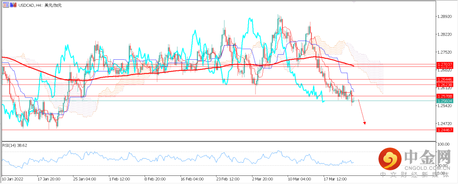2.美元对加元USDCAD:在油价依然保持强势的情况下,与其高度正相关的加元近期同样涨势不减。除此之外,俄乌冲突以来,加元汇率出现较大波动。美元/加元的关键因素将与取决于市场如何权衡加拿大央行相对于美联储的立场。如果市场认为加拿大央行更为鹰派,加息预期相应改变,则加元有望受益走高。反之亦然。