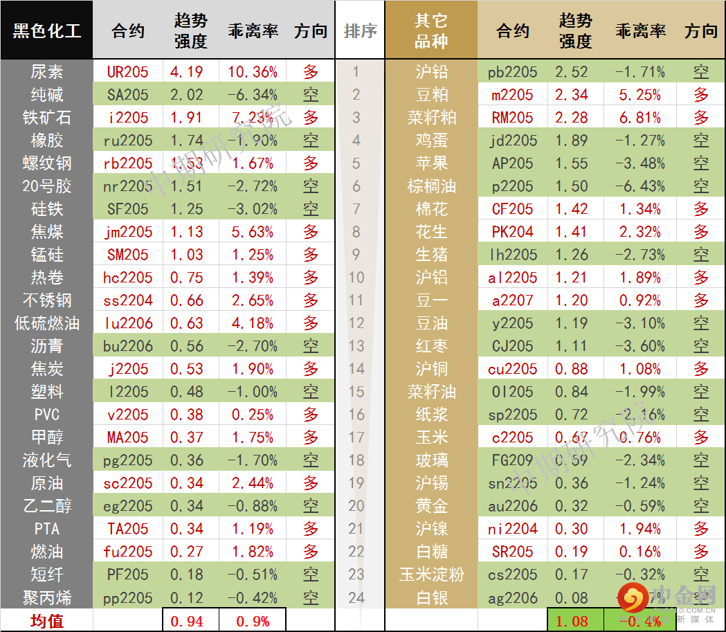 中期商品趋势榜 | 尿素多头强势(0321)