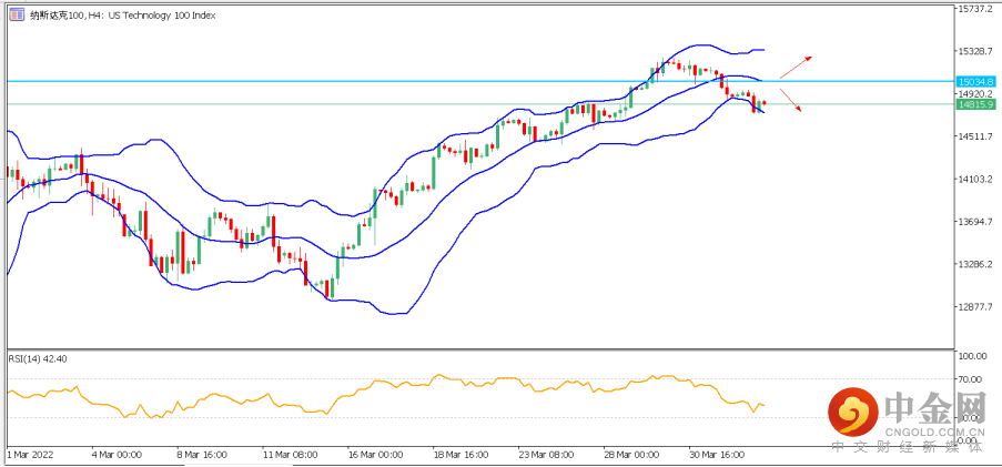 再结合4小时分图,日内布林带上轨15000-15050为压力位,若价格突破该区间,可能会再次挑战盘整区间上沿15250-15300区间。日内下方支撑可先关注14700,若无法有效获得支撑,则可能下测至14550,或关键盘整区间下沿14300一线。