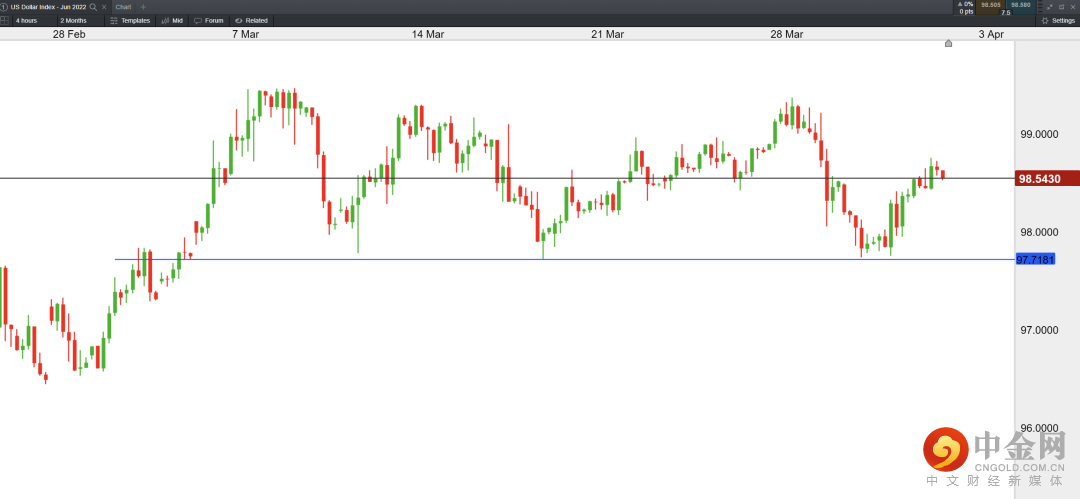 美元指数周五走高,连续两个交易日收涨,录得0.18%,报98.54。