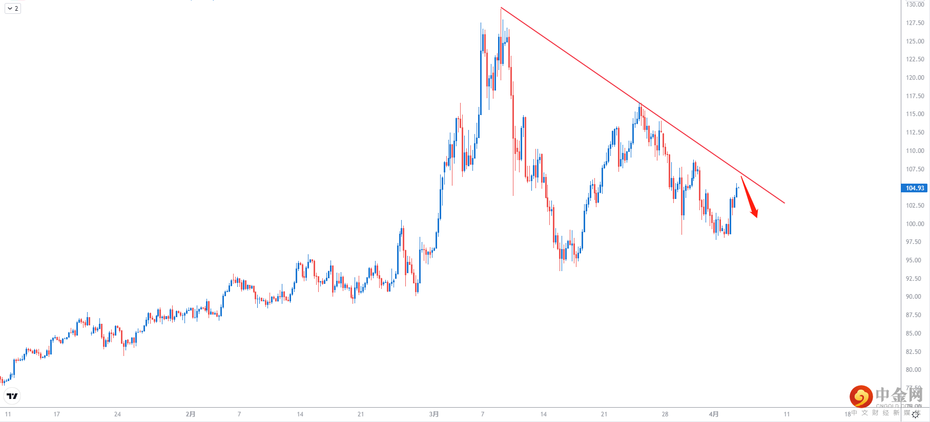 【交易策略】:建议投资者可考虑106.50附近做空,止损109.00附近,止盈102.00附近。