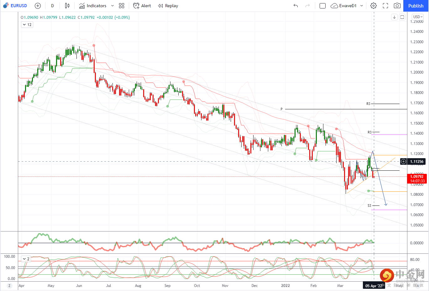 支撑位在 1.0806/1.1185 的 61.8 和 1.0950,突破目标 1.0806