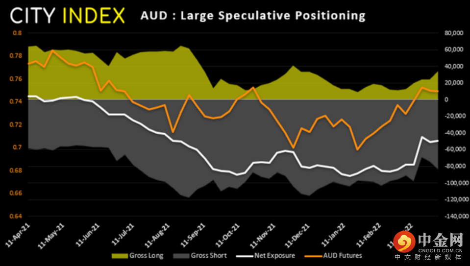 澳元目前的趋势向上,但众人的焦点将在明天的澳洲联储会议。对于此次会议,市场计入强硬前景,而澳洲联储的立场温和,两者间存在巨大的鸿沟。总多头已升至18周最高,上周多头又增10200张,但空头合约也增加8600张,似乎与之形成了对冲。然而,持仓净额仍为空头,约为49000张。所以,一旦澳洲联储明天的立场出人意料得强硬,需要回补的空头数量不少。然而,净空头持仓并未过度,新增的空间依然充分。