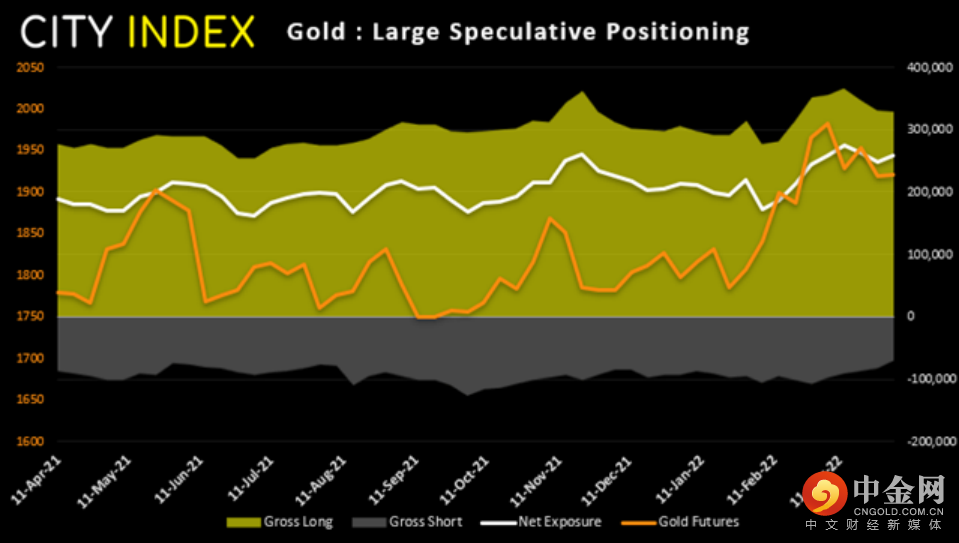 黄金与白银的整体头寸也连续第三周减少,体现于未平仓头寸下降。
