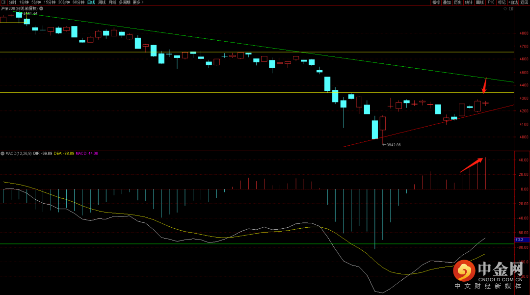 沪深300从前期周期看需要修复指标到零轴大概需要20到32天左右。而这段时间如果呈现的是跟18年年底类似的结构那就可能出现震荡向上,且走的结构也不会非常稳定,所以这边就需要投资者把控好节奏,不要盲目追涨,耐心等待回落的低吸机会即可。