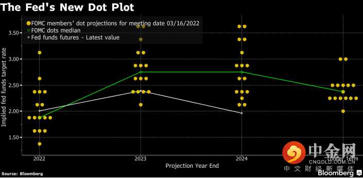 美联储最新的点阵图中,官员们的预测中值是基准利率到2022年底将在1.9%左右,然后在2023年升至2.8%。