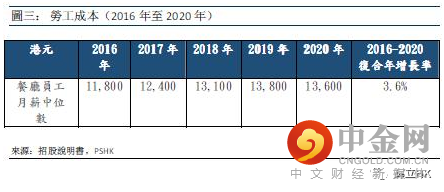 租金和人工成本是餐厅经营成本的关键组成部分。香港的租金成本高昂,一般占香港餐厅总运营成本的30%以上。人工成本亦于2016年至2020年期间增加,餐厅员工的月薪中位数以3.6%的复合增长率增长,在2020年达到13,600港元。不少餐厅营运商的盈利能力因此受影响。尽管如此,较大型的连锁式餐厅透过规模经济简化食物加工工序以减低人工成本,并采取集中采购政策,从而降低食材的单位成本。