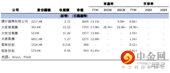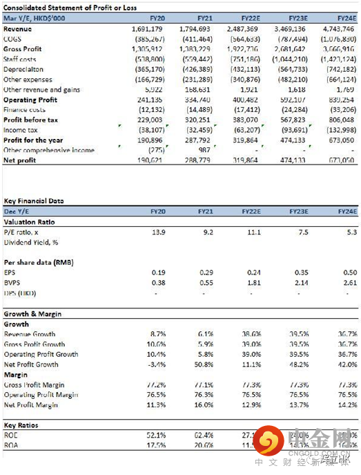 我们预计公司2022/2023/2024年每股盈利为港币0.24/0.35/0.50元,目标价为4.77元,对应2022/2023/2024每股盈利20x/ 13.5x/9.5x市盈率(行业的历史平均市盈率约为22倍),给予买入评级。